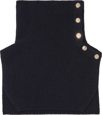 A clever slip-on accessory to keep your neck warm while looking stylish. This ribbed collar wrap is made from wool and features press studs and a side slit. Complete with a Clover logo on the back, it can be worn rolled up or open, over a sweater or a scarf.