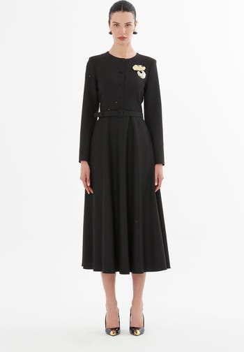 Perfect for the Fall-Winter season, this garment is about 50.4 inches long. It features a round collar, long padded sleeves, and a buttoned closure. The design is pocketless with a standard size pattern, wrist-length silhouette, and ruffled style. It has a normal waist and comes fully lined for extra coziness.