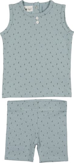 Scattered dots and pearly buttons brighten a tank top and matching shorts that keep your little one looking adorable in the softness of breathable cotton.
