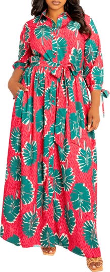 Keep it colorful in a maxi-length shirtdress designed with sweetly tied cuffs and the perfection of a pair of pockets.