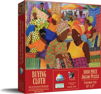Unlock a world of creativity with the Buying Cloth 1000 Piece Jigsaw Puzzle by SunsOut, a woman-owned business. This puzzle, designed for adults and proudly made in the USA, showcases the captivating artwork of Gwendolyn McShepard, taking you on a vibrant journey through colorful Americana shopping scenes. Each piece lets you dive into the complexities of everyday life and vibrant cultural expressions, reducing the frustration often associated with puzzles due to its high-quality recycled cardboard. SunsOut’s commitment to the environment is reflected in each puzzle, crafted with soy-based inks and the highest quality recycled-board. Accompanied by a seamless puzzle-building experience, top manufacturing standards, and a worry-free guarantee, any issues with missing or damaged pieces are swiftly resolved. A completed puzzle transforms to a striking 20" x 27" wall display of cultural depth and artistic flair in your home, supporting entrepreneurial women and contributing to a greater cause through an enjoyable pastime.
