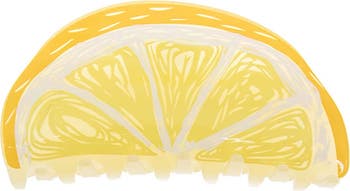 The Lemon Slice Hair Claw Clip adds a zesty twist to your everyday look. Made of durable acrylic and shaped like a fresh lemon slice, this vibrant clip brings a burst of sunshine to any hairstyle. Measuring 6CM x 11.5CM, it offers a secure hold with a playful citrus flair.