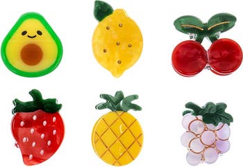 The Mini Multi Fruit Hair Clip Set is a juicy burst of fun for your hair. Made of smooth acetate, this six-piece set features playful fruit shapes including avocado, lemon, cherry, strawberry, pineapple, and grapes. Perfect for mixing, matching, or sharing, each mini clip adds a pop of color and charm to any hairstyle.