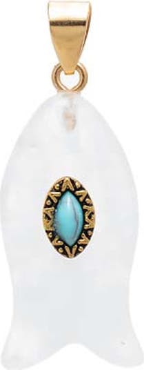 Add subtle glam to your fit with the Turquoise Marquise Natural Stone Fish Pendant by Adina Eden, a delicate yet bold Pendant. With graceful detail and bold tone options, this women's pendant is offered in Rose Quartz, Tiger Eye, Malachite, Turquoise and Mother of Pearl. From morning errands to evening events, this piece turns even your simplest outfit into a styled ensemble. Layer this gold plated pendant with accents from our Charms & Pendants collection for a finished outfit that feels totally you. It was made to match your real-life style, day in and day out.