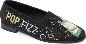 A cushioned footbed and leather lining offer lasting comfort in this classic flat enlivened with a festive needlepoint design stitched by hand.