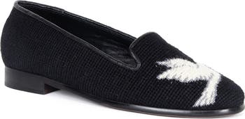 A cushioned footbed and leather lining offer lasting comfort in this classic flat enlivened with a needlepoint dove stitched by hand.