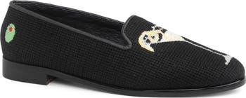 A cushioned footbed and leather lining offer lasting comfort in this classic loafer enlivened with a festive needlepoint design stitched by hand.