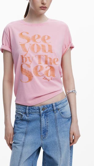 Stroll seaside in this relaxed-fit crewneck T-shirt decorated with text embroidery and rooted in the comfort of soft, breathable cotton.
