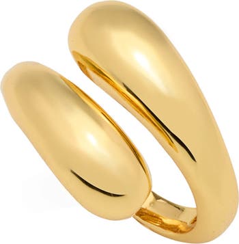 An of-the-moment bypass silhouette distinguishes this lovely ring plated in warm 18-karat gold.