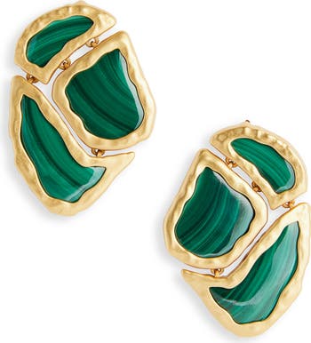Organically shaped malachite stones in goldplated settings bring vibrant color and beautifully striated patterns to these earrings from the Aussie label's 'Twisted Romance' collection.
