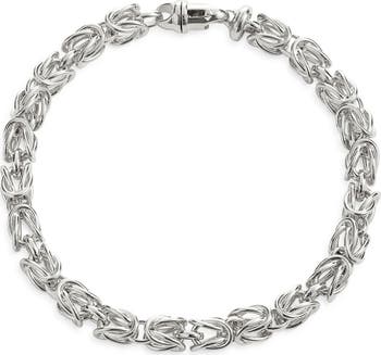 Made from rhodium-plated recycled brass, this collar necklace with a bespoke clasp offers a modern interpretation of a Byzantine chain.