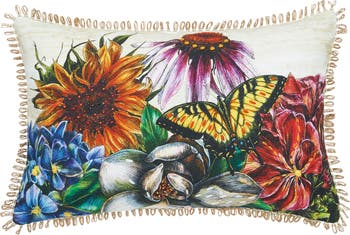 Botanical Flowers & Butterfly HD Printed Cotton Blend Lumbar Accent Pillow 14" x 22"