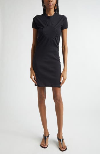 This mini-length T-shirt dress in breathable organic cotton features a figure-hugging fit, enhanced by soft gathers around the stitched C-logo.