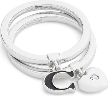 Mix, match or layer this polished ring set featuring a signature C charm and crystal-accented heart for a refined look with a touch of sweetness.