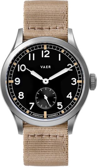 The ocean-to-office design aesthetic gets a retro retooling in this military-style Dirty Dozen field watch featuring all the functionality and readability of its WWII-era inspiration, but updated with a USA-assembled Ameriquartz movement and Super-LumiNova® glowing hands and markers.