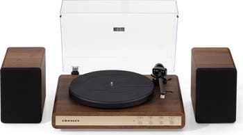 Includes: Turntable, 50-watt stereo speakers, clear dust cover.