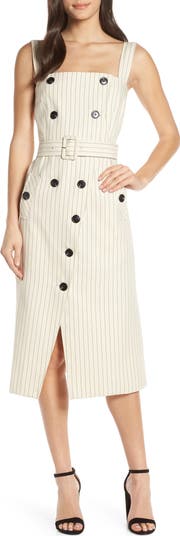 Menswear seasoned with a bit of whimsy results in a pinstriped frock peppered in buttons—some functional, some fun and all eye-catching.