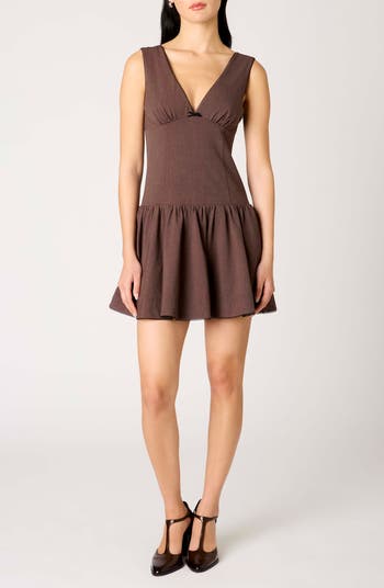 Sugar and spice make-oh-so-nice for a minidress edged in sweet picot and deeply dipped at the neckline.
