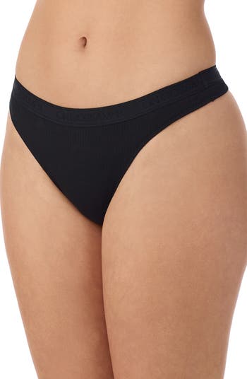 Supersoft ribbed fabric offers a comfortable fit in this no-show thong designed with a wide, logo-branded waistband.