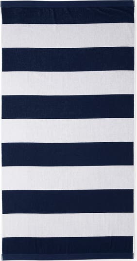 Made just like our famous rugby stripe beach towels, these are pure cotton terry in a 12.39-oz. weight. Heavy enough to feel substantial – adding cushion on the sand or chaise – but not so heavy to be unwieldy when it's time to dry off. Flatweave edges help prevent unraveling, and the six-and-a-half foot length gives you plenty of wrap-up room. Only difference between these and the classics? The yarn-dyed cabana stripe – for those retro beach shack vibes.