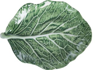 - Shaped like a full, oversized cabbage leaf, this melamine platter features deeply sculpted veining, a naturally ruffled and wavy edge, and a rich green glaze that captures the texture and organic beauty of a freshly harvested garden leaf.