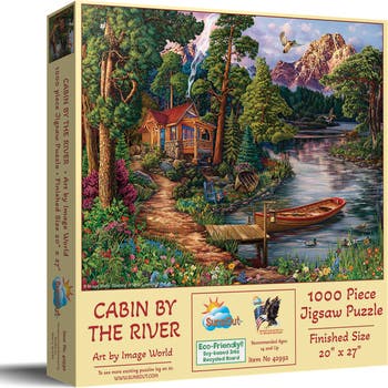 Cabin by the River 1000 pc Jigsaw Puzzle by SunsOut - 1000 Piece Jigsaw Puzzle - Completed Size: 20" x 27" - Puzzle Artist: Image World - Interlocking Pieces and Durable Construction: SunsOut jigsaw puzzles feature interlocking pieces that fit securely, making assembly easier and reducing frustration. -Ages: 15 years and older - Perfect for adults and seniors. SunsOut puzzles ensure high manufacturing standards ensuring their commitment to quality and customer service. - SunsOut puzzles use soy based inks, high quality puzzle board. As this is a jigsaw puzzle: assembly is required and batteries are not required.