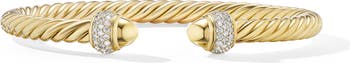 A sculpted cuff bracelet textured in the label's signature twisty cable comes to a shiny end with pavé diamond tips.