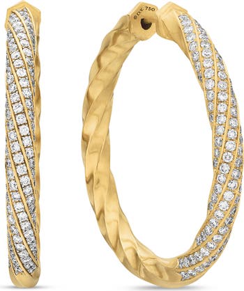 Cable Edge Hoop Earrings in Recycled 18K Yellow Gold with Pavé Diamonds