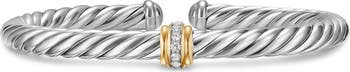 This handcrafted, cabled sterling silver cuff bracelet is centered with a 14-karat gold station encircled in sparkling pavé diamonds. The Cablespira® design unites artistry and innovation with the brand's exclusive, highly flexible construction.