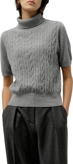 - Sleek turtleneck with unique short sleeves for transitional layering.