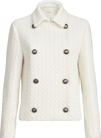The cotton yarn is soft, lightweight and breathable, making it ideal for summer and spring garments. The three-dimensional appearance of the cable knitting stands out for its sturdy yet airy texture, offering a soft, pleasant feel.