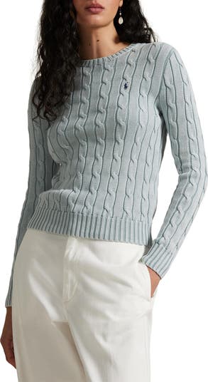 Soft cotton offers season-spanning comfort in this trim cable-knit sweater complemented by Ralph Lauren's embroidered polo rider—an instant icon since its '71 debut.