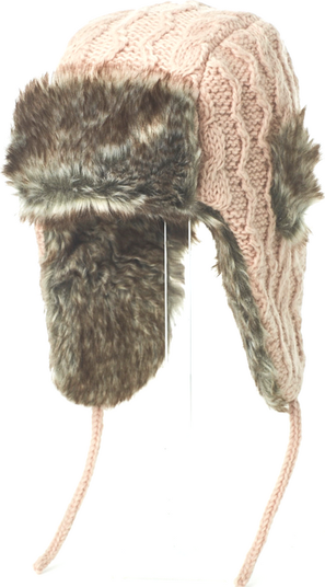 100% wool trapper style cable design hat with faux fur for lining. Handmade in Nepal.