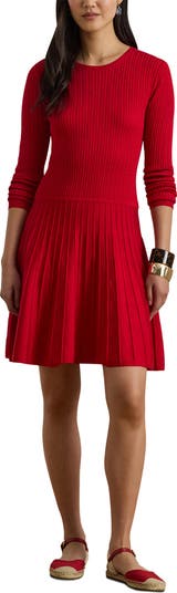 Slim cables and a twirlable skirt define a vibrant sweater dress that works for desk days and drinks dates.