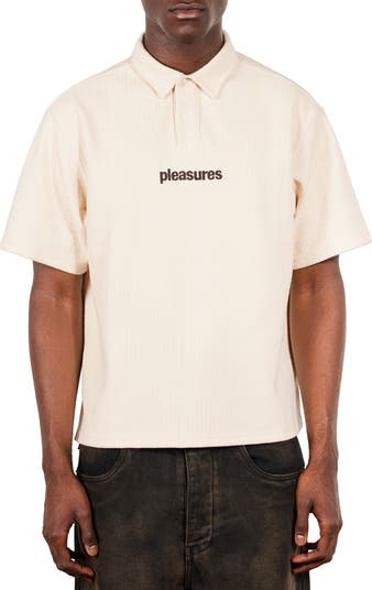 Brand embroidery takes center stage on a drop-sleeve polo cut from a stretchy, jacquard-knit blend.