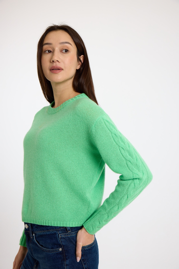 Cable Sleeve 100% Cashmere Sweater