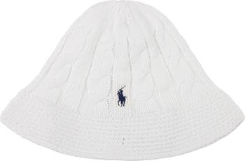 This all-season bucket hat is knit from cotton yarns in a cable-stitch pattern and finished with a signature embroidered logo, ensuring you are always in style in and out of the sun.
