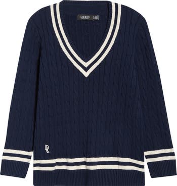 This relaxed-fitting cotton crewneck sweater merges timeless cable stitching with equestrian-themed patterning in front.