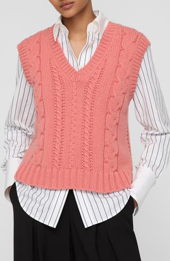 Knit from a luxurious blend of merino wool and cashmere and traced with dimensional cables, this sweater-vest brings plush warmth and a clean-lined silhouette that slips between seasons and shifts from tailored to casual with ease.