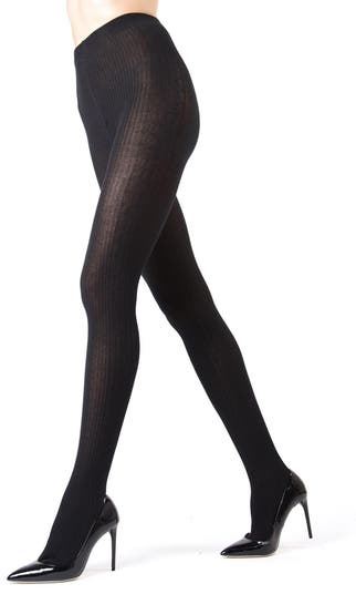 Feel and look perfectly in tune with the season in these cozy sweater tights highlighted by cable-stitch detail on the sides.
