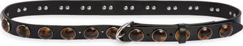 Smooth polished stones dot the length of this belt made from fine leather and fastened with a brushed buckle.