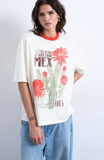 Sun-faded cactus graphics bring worn desert-club energy to this relaxed cotton T-shirt topped with a contrast crewneck that lends vintage-driven appeal.