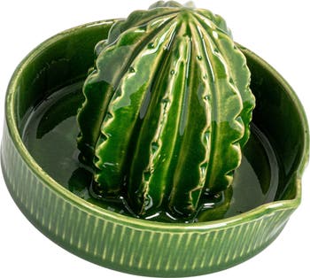 - A vibrant green stoneware juicer that brings the whimsical shape of a cactus to the kitchen