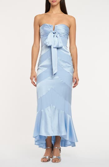 Smooth silk amplifies the luxe style of this strapless dress featuring a bow embellishment and gently ruffled mermaid skirt.