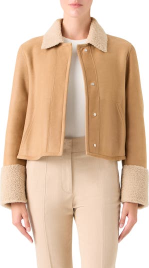 Albert Kriemler's legacy of artisan fabrication shines through the rich contrast of textures of this reversible genuine-shearling jacket cut in a boxy, cropped silhouette.