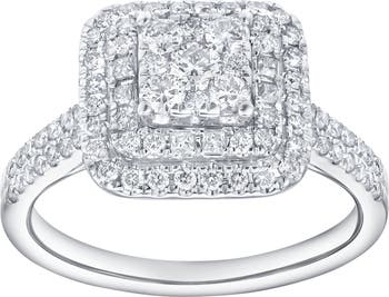 The Caelisse Diamond Ring is luminous and elevated. The ring features 1.25 carats of natural diamonds set in polished 14K gold. A brilliant cushion style composite center is framed by a sparkling double halo. The pave split shank adds extra dimension and shimmer for a look that shines from every angle. Designed to feel timeless yet glamorous. Caelisse is perfect for special occasions or everyday luxury when you want maximum brilliance with a refined silhouette. Expertly made with ethically sourced natural diamonds. Diamond carat weight may vary up to 0.05 carats from the stated weight.