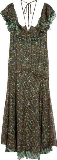 Each season, the Turkish brand whisks us away to Siedrés—an imaginary Mediterranean town you might breeze through in this airy chiffon midi dress with a romantic cascade of floral ruffles edged in peekaboo plaid.