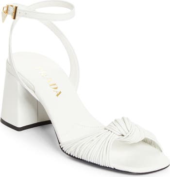 A textured knotted strap brings dimension to this leather sandal strung with a enamel logo charm.