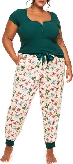 Sweet dreams start with this cozy matching PJ set featuring a sweet and flannel joggers finished with a faux satin drawstring.