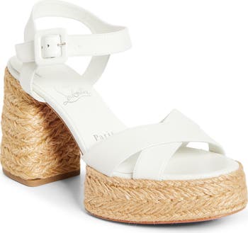 Beautifully braided jute wraps the segmented platform and block heel of this architectural sandal, grounded by the label's signature-red sole.